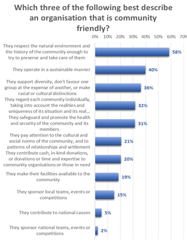 Of 11 factors measured, these are the top three influencing companies’ community friendly status: