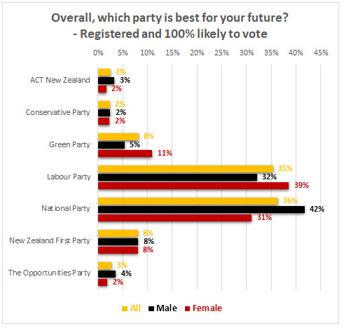 42% of males, however, think National is the best party for their future and 32% think Labour is.