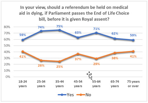 It then asked if a referendum should be held on medical aid in dying, if Parliament passes the end of Life Choice Bill, before it is given Royal assent.