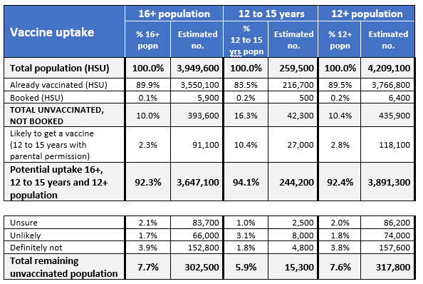 27% indicated they would definitely not get vaccinated for Auckland and South Island to change alert levels, and a further 23% said it was unlikely to encourage them to get vaccinated.
