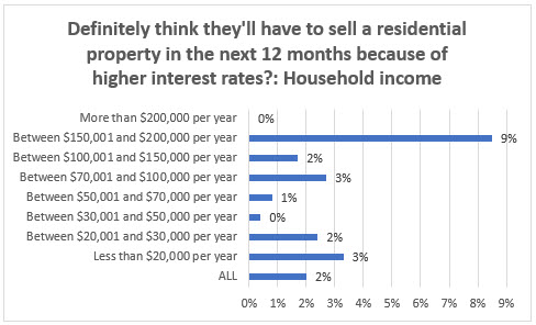 • Incomes between $150,000 and $200,000 a year are most worried: 9% definitely think they may have to sell a dwelling, compared with 2% overall